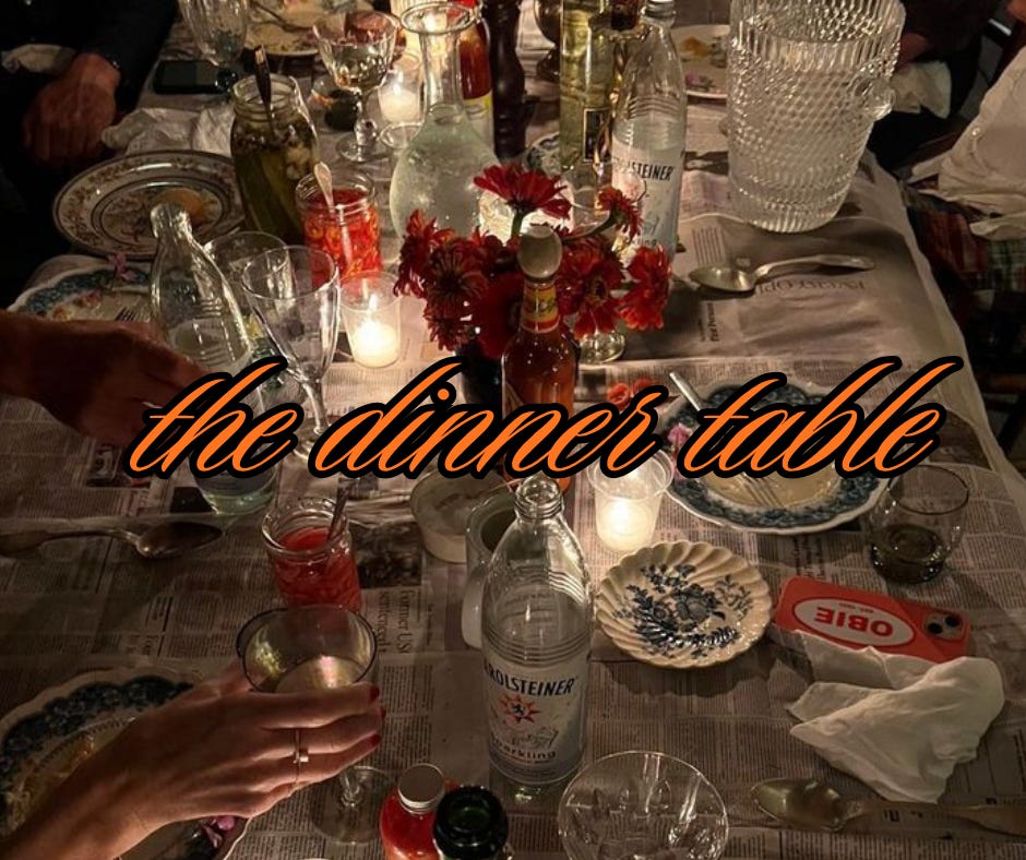 hello and welcome to edition six of the dinner table—after being MIA for half of august and all of september, despite promising you a weekly newsletter.